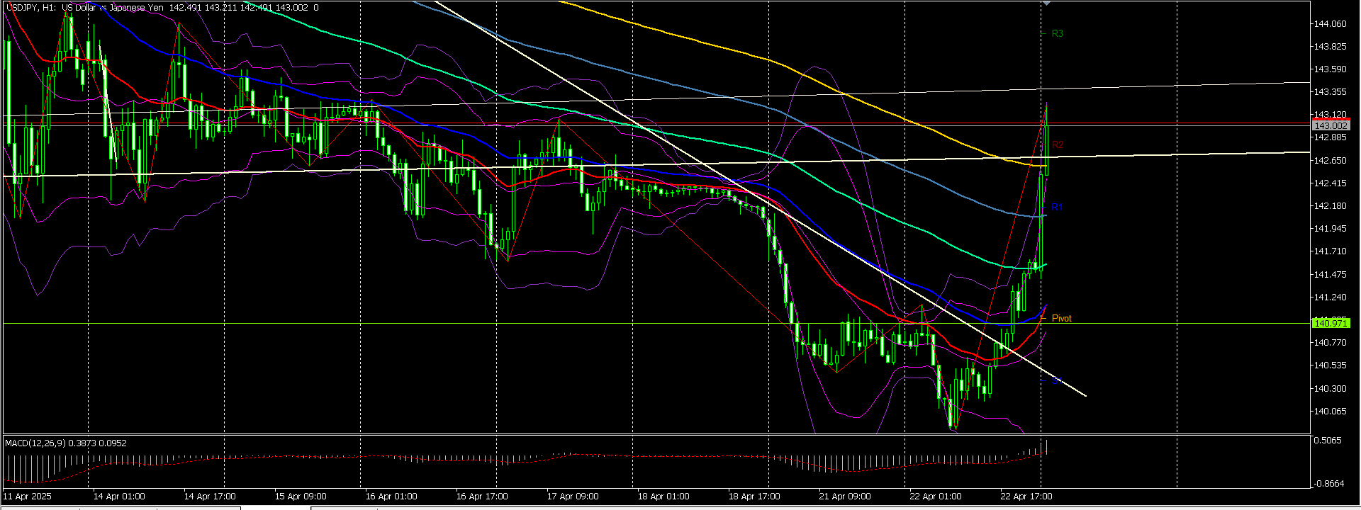 朝起きた時の状態です。FRBのパウエルさんを解任しない発表と中国関税の軟着陸の用意がある発言で一気に吹き上げた模様です。トランプ劇場恐ろしいです。